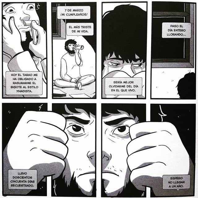 El 13 de julio de 2015 el periodista Antonio Pampliega fue secuestrado por un comando de Al Qaeda. Estaba trabajando en la ciudad siria de Alepo, y su cautiverio se alargó durante 299 días. En 2017 decidió contar su historia en un libro autobiográfico titulado En la oscuridad. En 2019, la dibujante Sara Soler lo convirtió en novela gráfica.