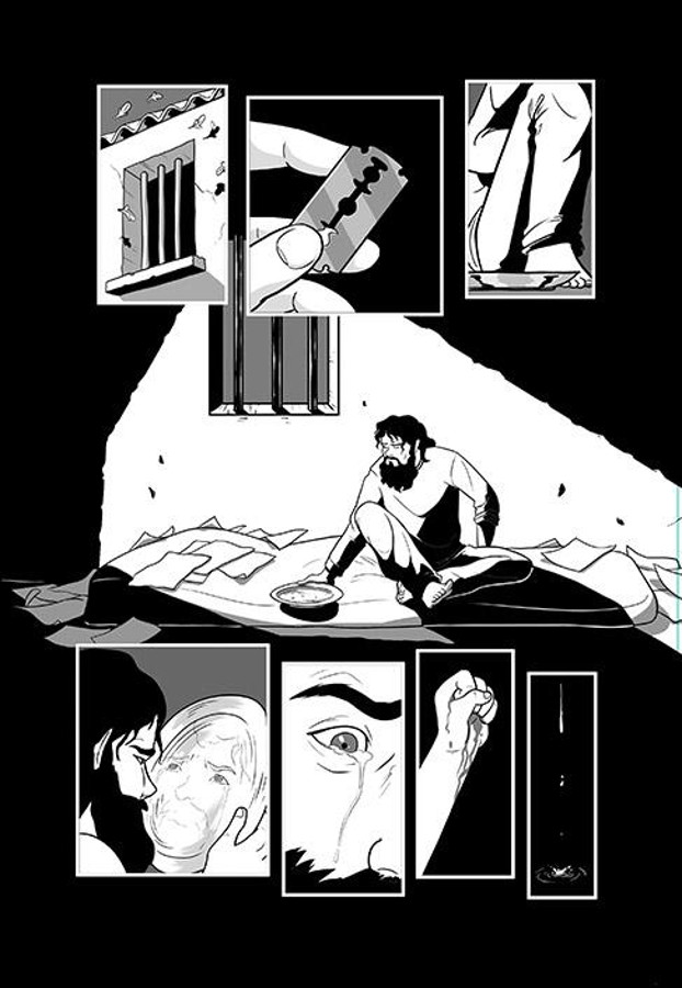 El primer impacto que recibimos al abrir las páginas de En la oscuridad, el cómic, es encontrarse con que nos enfrentamos a un blanco sobre negro, un formato en negativo. A lo largo de gran parte de este libro nos encontraremos con hojas con una total ausencia de color y con viñetas en blanco y negro. Al fin y al cabo, Antonio estuvo a oscuras a lo largo de gran parte de su secuestro, por lo que esta elección da el tono idóneo a la narración; cuando nosotros no vemos es porque Antonio no veía.